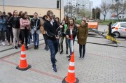 Jaunogres vidusskolas skolēni atbildēja uz jautājumiem un aktīvi piedalījās apmācībā. Skolēniem bija iespēja izmēģināt automašīnas frontālas sadursmes stendu un alkohola reibumu imitējošas brilles.